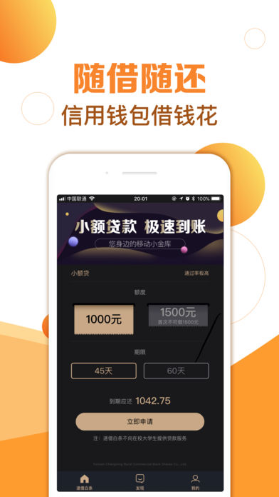 为月光族提供解救方案,成为用户的随身周转钱包。年轻人手中的便捷银行。