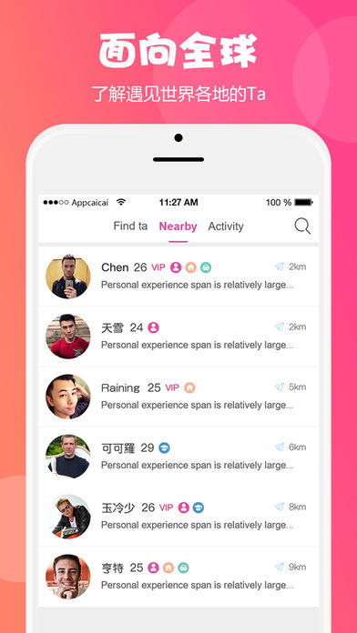 附近人推荐:通过用户填写的注册地,为其推荐周边的朋友,便于附近用户快速找到彼此。