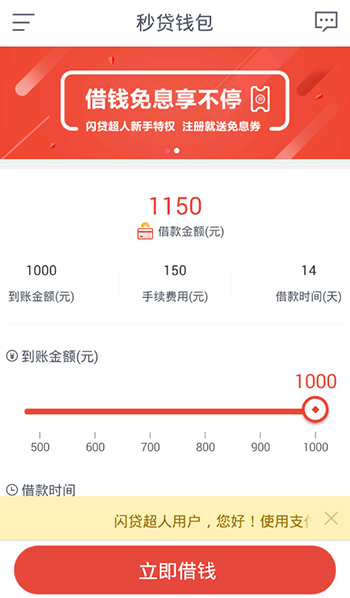 灵活:可选择7-14天、500-1000元的自定义期限与金额。