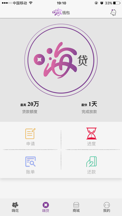 嗨钱包APP是由湖北消费金融公司倾心推出的一款互联网消费分期产品,具备两大分期功能。一是嗨花,小额循环贷,审批迅速,循环使用,灵活提现,扫码消费皆可。二是嗨贷,大额消费贷,额度高达,最快可当日放款。嗨钱包,助您轻松实现消费梦想,成为可分期的电子钱包!