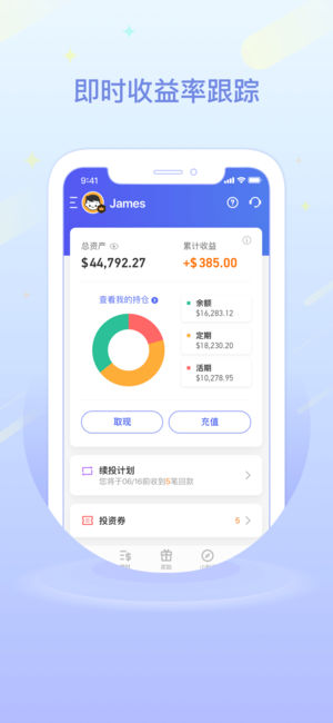 - 开户、充值、投资、赎回、取现、销户,轻松一站式服务!