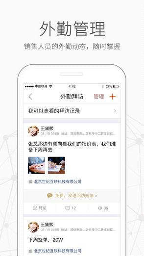 【简单易用】:如同普通聊天APP般简便,所有办公事务尽在手机上完成,无需培训员工,直接导入企业通讯录,快速部署
