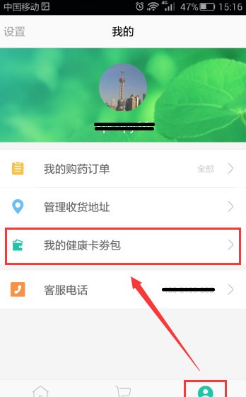 在“我的”中选择“我的健康卡券包”