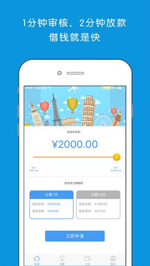 三分钟即可完成申请,极速审核,最快一分钟放款。