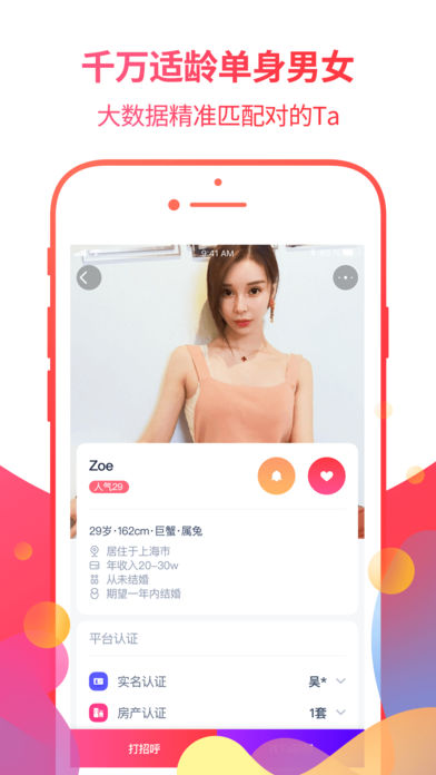 严谨的人工认证,确保资料真实无误,为单身男女打造一个理想的征婚平台。