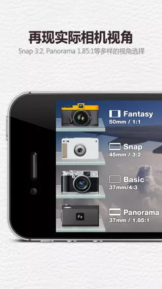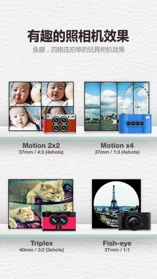 多种相机类型任君选择,涵盖四格连拍、鱼眼效果等相机。