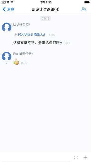 1、【即时沟通】支持文本、图片、文件等消息的即时传输,轻松发起单人或会话;