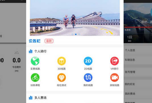 智骑联盟app是一款与智能骑行台相辅相成的应用,您可以选择2D或3D视角,更可以沉浸于VR模式中,使您在家骑行时仿佛周游四海,纵情天涯。此应用亦可独立使用。