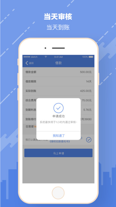 1、极速贷款:当天审核,当天放款,最快五分钟到账。
