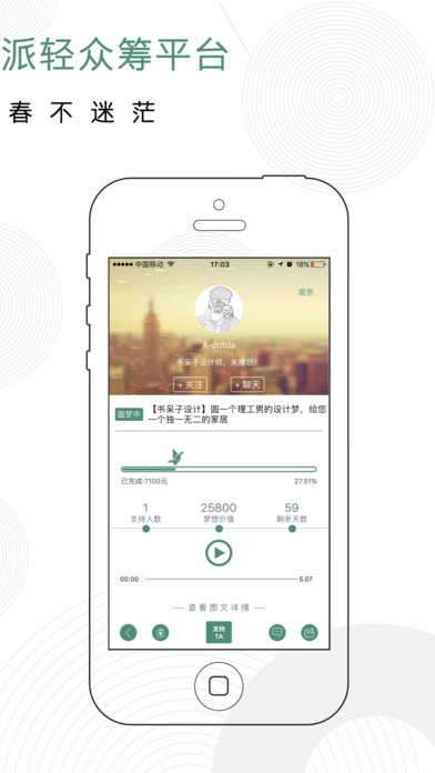 在梦想说,您可以发起或支持各类创意梦想,也能够浏览他人的梦想故事,与梦想的发起者在线交流,共同实现梦想!