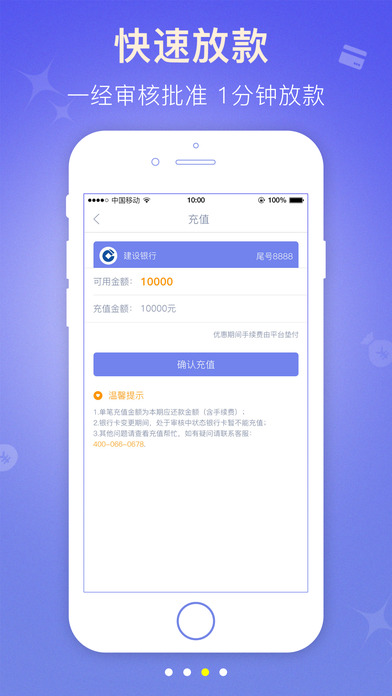 2. 享受快速申请通道,最快1天内即可审核并放款