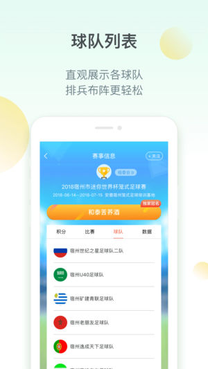 球队列表,清晰展示各队伍,愈加轻松。