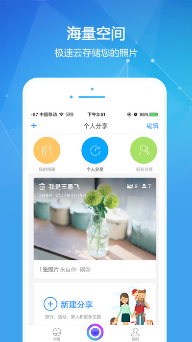 用每一张照片记录下生活中值得珍藏的瞬间,创建共享相册,邀请亲友共享你们的美好时光。