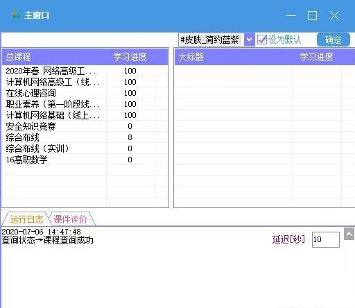 若未刷完即表示此课程已完成,需点击下一个大标题。因进度非实时更新,软件设定为进度达到100后执行下一个大标题,若延迟查询未达100,则不会进行下一个标题,需手动点击。