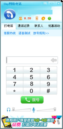只需安装SKY客户端,借助电脑和耳麦,便可轻松拨打全球200多个国家和地区的手机及固话。对硬件设备和网络的要求极低,使用简便,操作轻松。