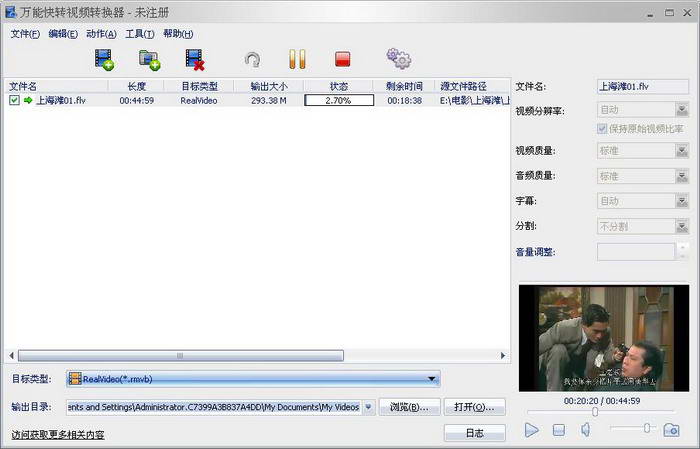 万能快转是一款功能卓越的全能视频格式转换软件,支持多种视频格式的转换。此款视频转换器能够将RM、RMVB、AVI、WMV、MPG、MPEG、FLV、3GP、MP4、SWF、ASF、DIVX、XVID、3GP2、FLV1、MPEG1、MPEG2、MPEG3、MPEG4、H264等多种视频格式转化,适用于各类mp4播放机、手机、PSP游戏机、iPod、DVD、iPhone、高清电视等设备播放。这是一款专为专业视频转换及压缩而设计的软件,采用国际顶尖的编解码技术,转换质量与速度均处于国内领先水平,具备转换速度迅捷、支持批量转换、易于上手及操作简便等显著特点,是电脑用户不可或缺的视频转换利器。
