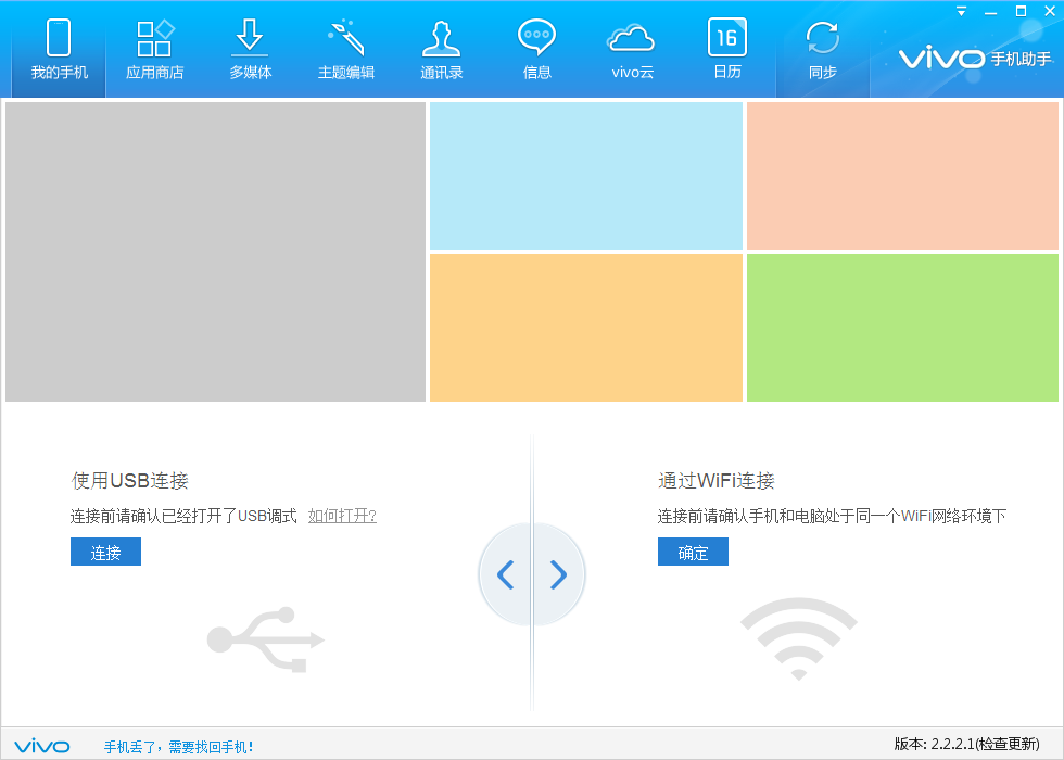 工具会自动检测服务器是否有更新版本。当“工具升级”按钮上出现更新标识时,表明有新版本的vivo手机助手可供更新,此时您可以将工具升级至最新版本。