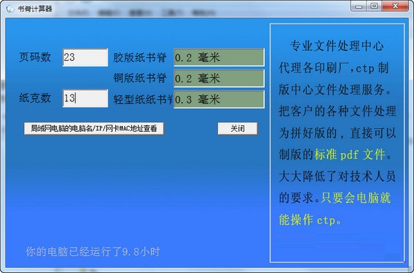 这是一款卓越的书脊厚度全自动计算工具,书脊计算器功能强大,使用便捷,能够有效辅助用户进行页面设置,并支持纸克数的调整,轻松实现胶板纸书脊等功能。用户只需设定页码数及纸克数,便可快速完成设置。