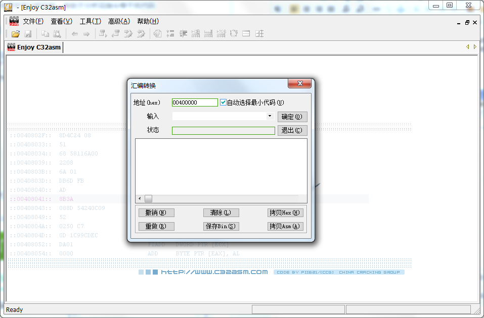 c32asm无疑是一款非常优秀的反汇编工具,经过小编的测试,发现其功能已超越winhex 16及W32Dasm,具备反汇编模式与十六进制编辑模式,能够追踪exe文件中的断点,并可直接修改程序内部代码。