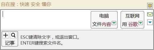在“电脑”按钮上右键点击,可切换搜索“文件名”或“文件内容”。输入搜索关键字后,点击“电脑”按钮,即可搜索文件名或文件内容。(注:回车始终搜索文件名,无论按钮上显示的是什么。)