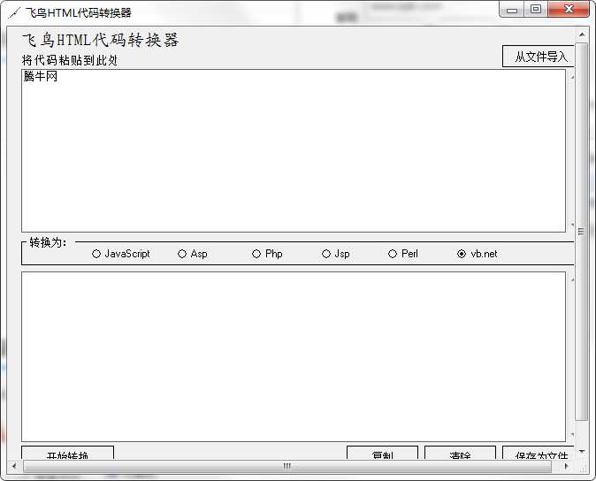 飞鸟HTML代码转换器是一款绿色且免费的HTML代码转换工具,可以将HTML代码轻松转换为PHP、ASP、ASP.NET等多种格式。