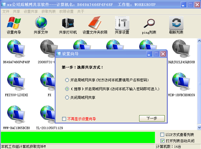 3. 设置完成后,本软件将自动查询局域网内所有计算机的名称,您只需选择相应计算机进行共享即可。