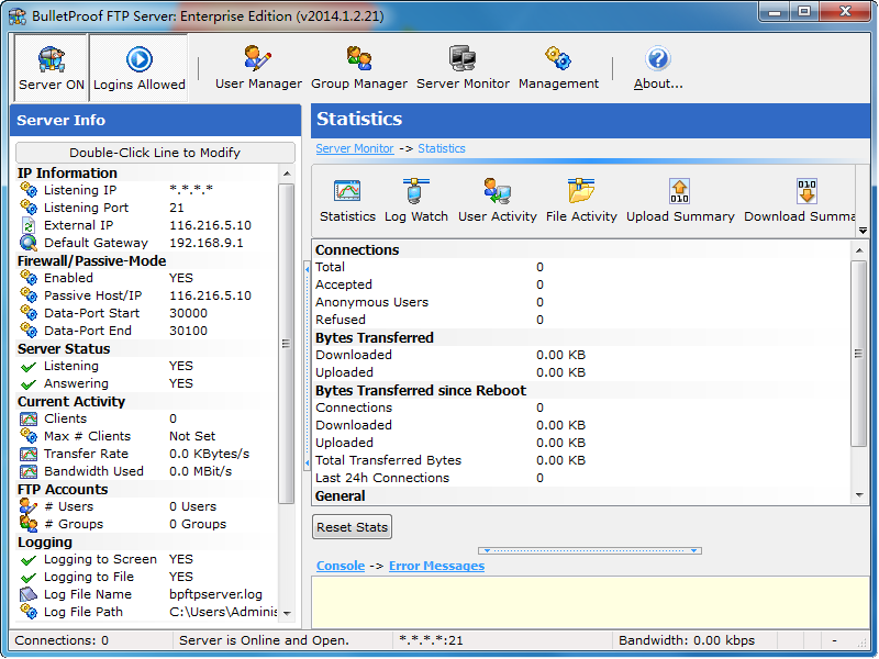 BulletProof FTP Server是一款支持动态IP更新的服务器软件。