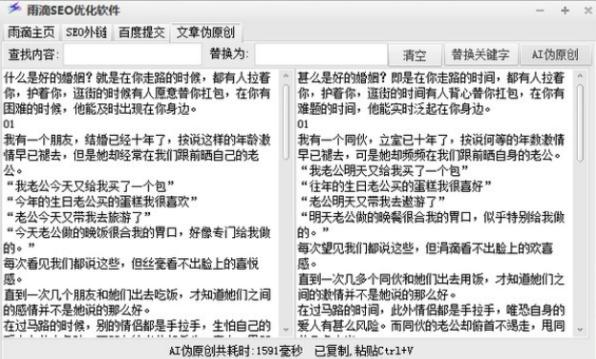 雨滴SEO是一款极为实用且便捷的SEO优化软件工具。此款工具能助力用户定时每几个小时发布一次SEO外链,同时支持AI伪原创文章生成与关键词替换,喜爱此工具的用户不妨立即下载体验一番!