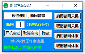瀚宇断网管家是一款由瀚宇软件倾情打造的智能断网自动关机工具。这款软件体积小巧、操作简便,旨在为您提供优质的使用体验。当您的电脑因外部因素遭遇断网时,瀚宇断网管家能够根据设定,自动将电脑置于休眠状态或智能一键关机,轻松应对网络故障,欢迎有需要的用户下载体验!