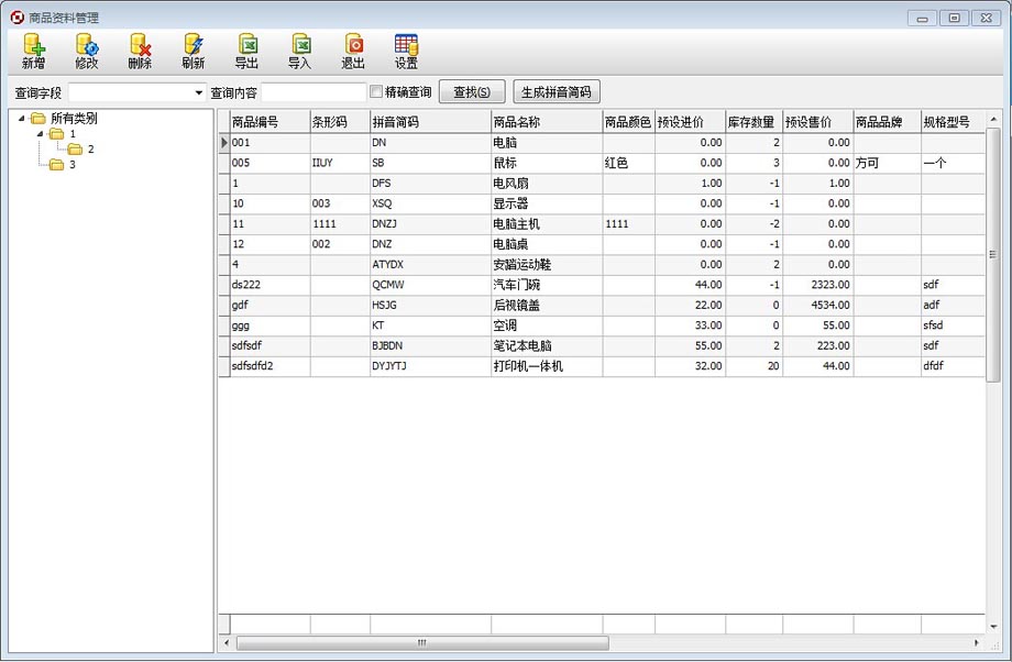 3)资料分类更为细致,如商品类目、客户划分、商品规格型号、颜色等设置。