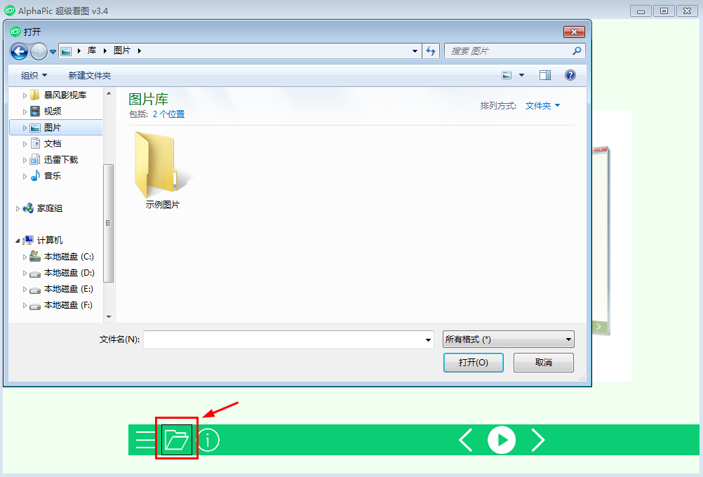 点击左下方第二个文件夹图标,选择您想要打开的图片