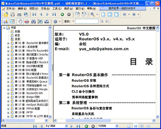 下载包内含有“MikroTik+RouterOS+V5+中文教程.pdf”文件,作为ROS软路由的安装指南。