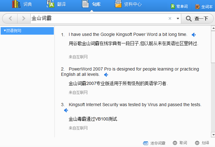 金山词霸是一款免费的软件,首版由金山公司于1997年推出,历经17年的精心打磨,现已成为亿万用户的必备之选。其最大的亮点在于内容丰富且权威,收录了141本版权词典,32万条真人语音,以及涵盖17个场景的2000组常用对话。我们强烈推荐您在阅读英文资料、写作、撰写邮件、单词复习等多种应用场景中使用它。最新版本还支持离线查词,即使在没有网络的情况下,您也可以轻松使用词霸!除了PC版,金山词霸同样兼容Iphone/Ipad/Mac/Android/Symbian/Java等平台,您还可以直接访问爱词霸网站,进行查词、查句和翻译等多项功能,还提供优质的英语学习内容与社区,助您在此学习英语、结识朋友。