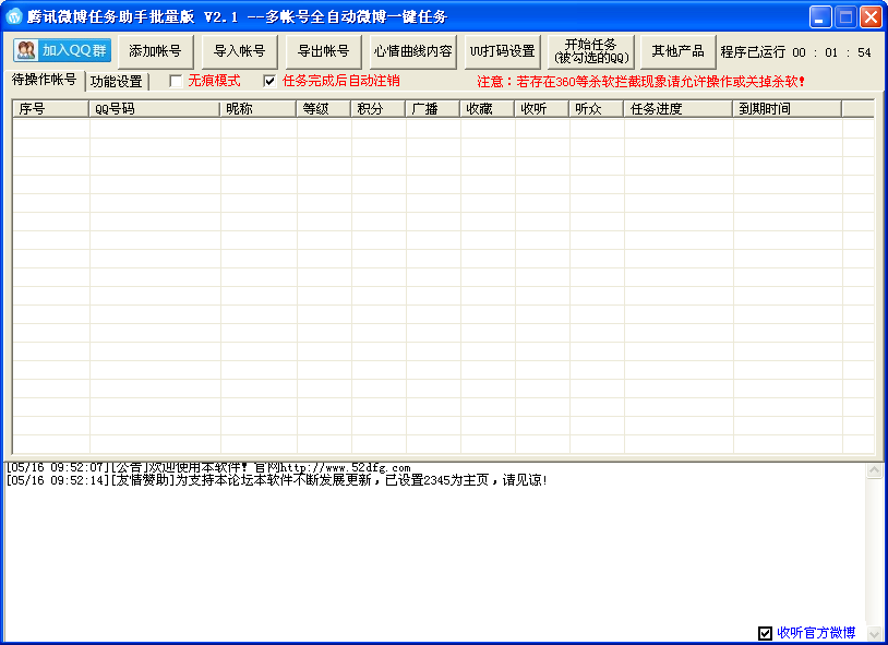 任务助手批量版旨在帮助用户自动化完成QQ微博的每日任务,作为一款多账户全自动微博一键任务工具,它使得获取经验勋章和奖励变得轻而易举,甚至还可参与抽奖活动。