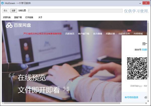 1、HoDown凭借全新架构、全新界面与全新功能,提供更多强劲体验,无需登录即可下载,直接打开百度网盘分享链接即可开始下载。