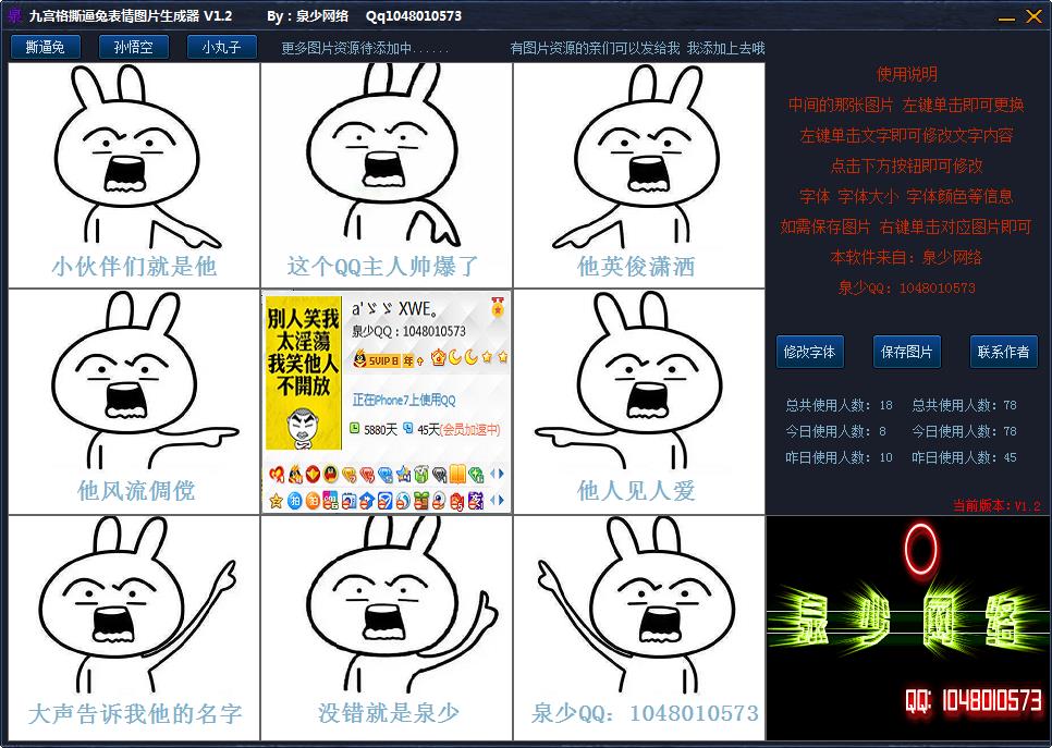 九宫格撕逼兔表情图片生成器是一款免费且便捷的表情制作工具,旨在帮助用户轻松一键生成撕逼兔九宫格表情。所制作的表情可用于发布微博、帖子等,让每个人都能分享自己独特的搞怪表情,欢迎热爱此类创作的朋友们免费下载体验!
