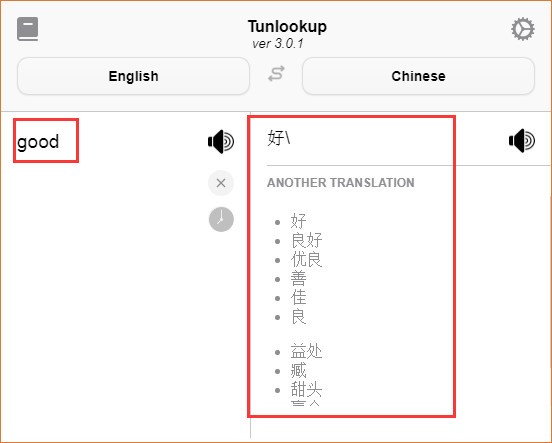 Tunlookup是一款高效便捷的翻译文本工具,支持多种语言的翻译功能,可以直接对鼠标选中的文本进行翻译,同时也支持手动输入文本进行翻译。它能够将您之前的翻译记录进行保存,即使在无网络的情况下,也能随时查阅,使用起来非常方便快捷。