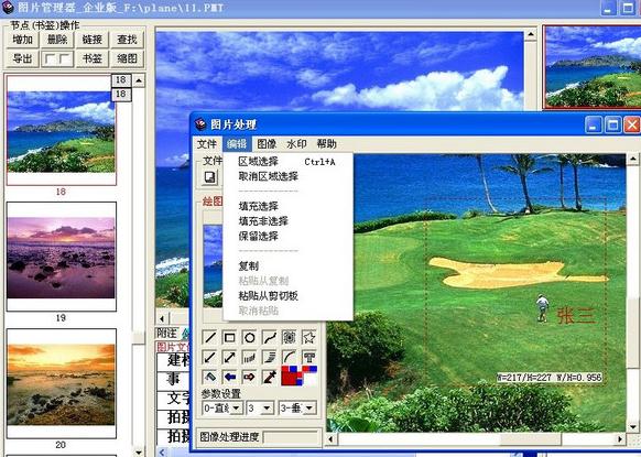 1.《数码 PMS》所编制的PMT格式文件与原始照片并不关联,删除原始照片也不会影响PMT文件的编辑与阅读,生成独立的PMT格式文件(如同PDF文件);界面上同时显示照片、目录树(缩略图)、附注栏和说明栏,用户可通过查找目录树、附注栏和说明栏的文字迅速检索照片,照片资料检索便捷、信息全面且可读性强;