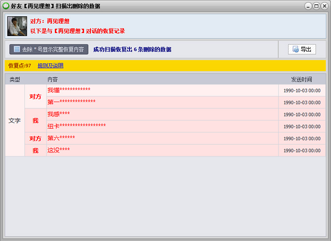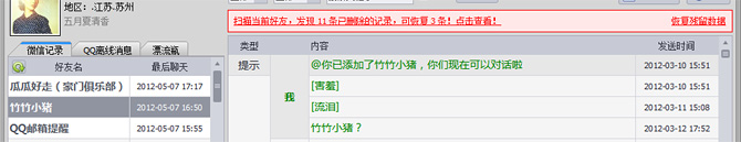点击左侧您欲恢复的好友名称,软件将自动扫描可恢复的删除数据,若存在可恢复的数据,便会在右侧显示出来。