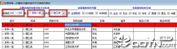 只需输入成绩段、本科批次及科类,即可显示对应的学校。