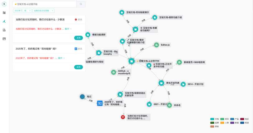 具备双向链接的笔记,结合了自研的自然语言处理技术与广泛的知识图谱功能。