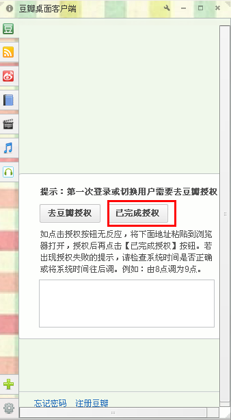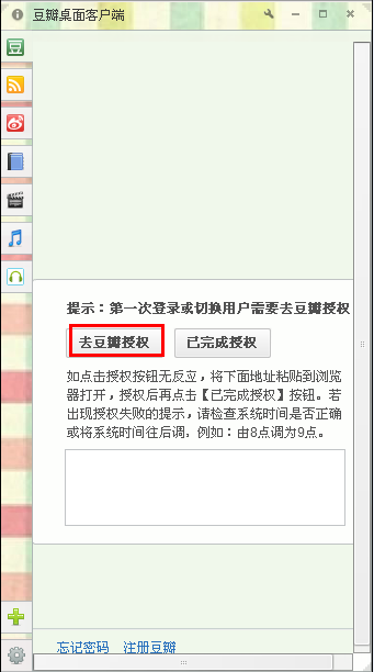 如果登录后未自动跳转至授权页面,请再次点击去豆瓣授权。