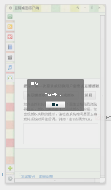 运行软件并登录后,如果尚未完成豆瓣授权,则无法正常操作,因此请先进行豆瓣授权,如下图所示:
