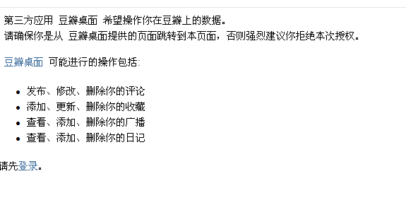 点击上图所示的授权后,系统将跳转至豆瓣授权网页。