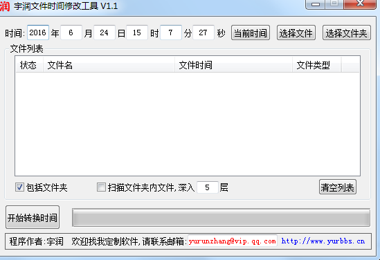 宇润文件时间修改工具是一款功能强大的实用工具,旨在便捷地修改文件和文件夹的时间戳。用户可自由设定时间,也可选择系统当前时间,欢迎需要的朋友下载体验。