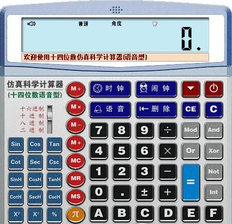 十四位数仿真科学计算器是一款拥有和计算器有相同界面的仿真,该计算器可进行多种科学与逻辑运算,功能非常强大,在工程计算,科学计算,理财计算上都能起到很好的帮助。