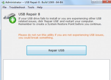 作为实用靠谱的usb设备修复工具,USB Repair界面简洁明了非常容易上手使用,只需单击一下即可执行usb设备修复操作,大家甚至无需编辑注册表项或进行其他复杂的设置即可修复USB设备错误,用户只需将出现问题的U盘或者其他usb设备插入到电脑中,然后在USB Repair主界面上单击“Repair USB”按钮,根据提示可能需要重新启动计算机,如果不是硬件级别的损坏问题通常都能得到圆满修复