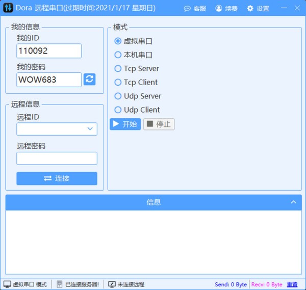 Dora远程串口软件使用独特的P2P连接技术及服务器辅助,无需知道通信双方IP地址,无需公网IP地址,无须担心数据泄露,突破服务器带宽限制实现内网穿透.软件支持串口,TCP,UDP等多种设备通讯协议,可实现本地设备与远程设备的高速无障碍数据传输,广泛用于实验数据的远程采集,PLC远程下载程序,小型项目以及项目前期市场验证,工业设备远程售后维护验证等场景.