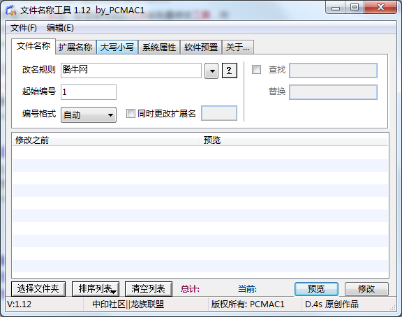 文件名称工具是一款非常不错的更名软件,文件名称工具中文版界面美观,功能丰富,可以修改文件名称,设置扩展名称,设置属性,还有软件预置的功能。操作起来也方便。