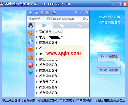 QQ个性分组图案设计工具可以比较快捷的设计个性的QQ分组图案,以方便转帖到BBS或其他地方与网友分享。